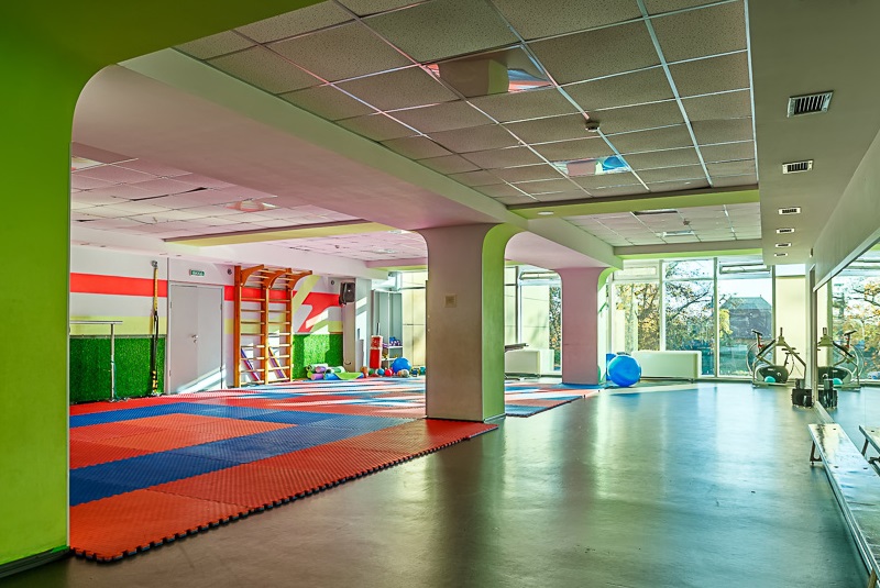 - спецобладнанням для ефективності тренувань: килимки для фітнесу, гантелі фітболи, медболи, роли, обтяжувачі на ноги;